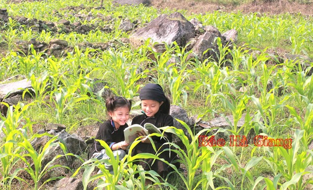 Trẻ em La Chí, xã Nà Khương (Quang Bình) học bài trên nương.