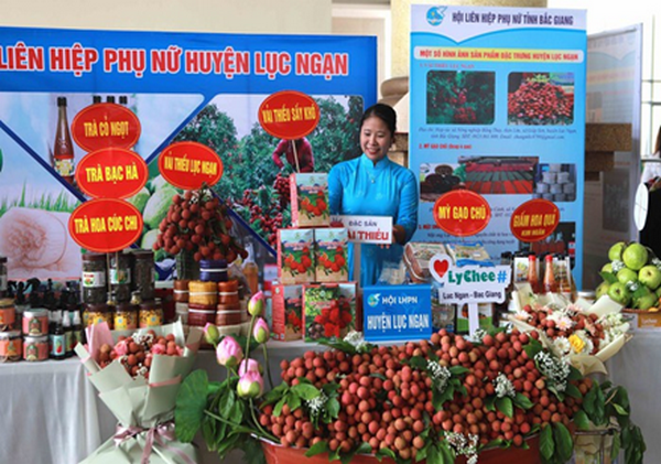 Gian hàng trưng bày, quảng bá sản phẩm của huyện Lục Ngạn