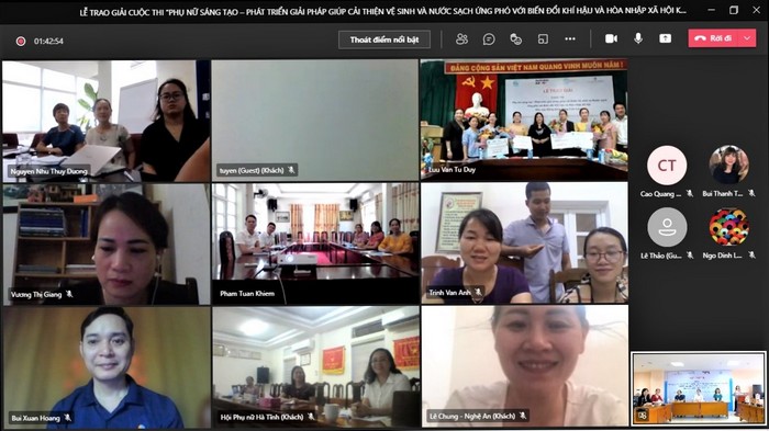 Lễ trao giải cuộc thi “Phụ nữ sáng tạo - Phát triển giải pháp giúp cải thiện vệ sinh và nước sạch ứng phó với biến đổi khí hậu và hòa nhập xã hội” được thực hiện trực tuyến tại 7 điểm cầu