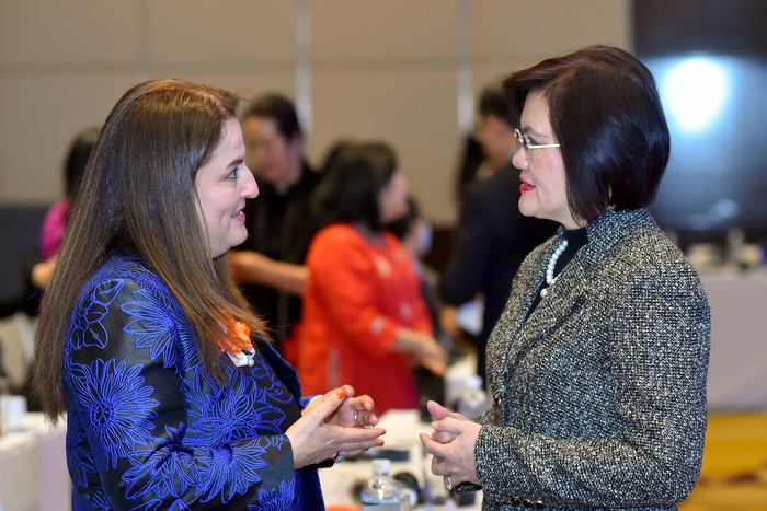 Đại sứ Nguyễn Nguyệt Nga (phải) trao đổi cùng bà Elisa Fernandez - Trưởng đại diện UN Women tại Việt Nam