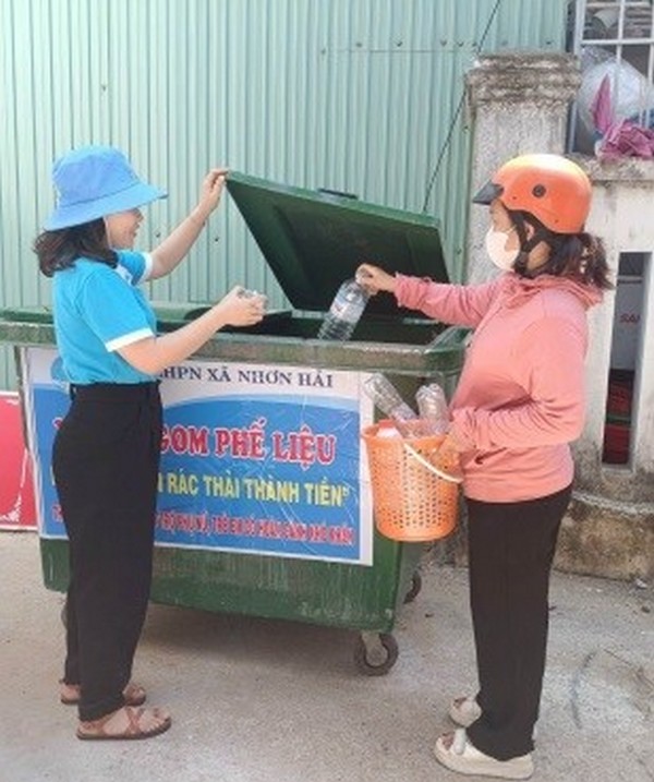 Tiếp tục duy trì mô hình “Tổ phụ nữ thu, gom mua bán ve chai” để có kinh phí nhằm giúp đỡ hội viên phụ nữ và trẻ em thực hiện công tác an sinh xã hội; xây dựng 2 mô hình “Ngôi nhà xanh” được hội viên phụ nữ và Nhân dân đồng tình tham gia hưởng ứng. Để thu gom hết được các phế liệu tại các hộ gia đình, Hội đã xây dựng thêm mô hình thu gom “Biến rác thải thành tiền” với hình thức trang bị xe đẩy đi thu gom phế liệu vào hàng tuần. Đồng thời, Hội đã duy trì công việc thu gom và tái sử dụng nguồn giấy báo, bao gạo cũ được thu gom từ các hộ dân và từ ngôi nhà xanh để may thành túi xách, bao bì phát tặng cho các hộ tiểu thương buôn bán tại chợ Nhơn Hải nhằm hạn chế sử dụng túi nilon trong mua bán kinh doanh. Chính ý tưởng này đã giúp cho Hội phụ nữ xã đã đạt giải Nhì của cuộc thi “Thiết kế ý tưởng - giải pháp về bảo vệ môi trường” do Hội LHPN tỉnh Bình Định triển khai.