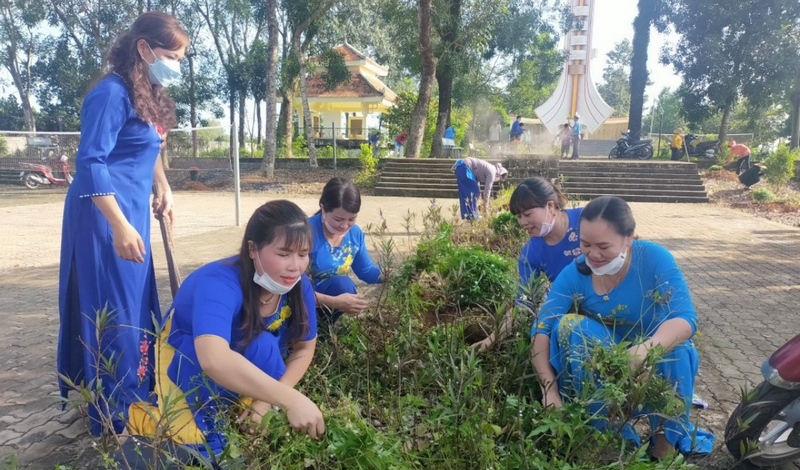 Dọn dẹp vệ sinh và trồng hoa tại nhà bia tưởng niệm các anh hùng liệt sỹ tại xã Tân Phước