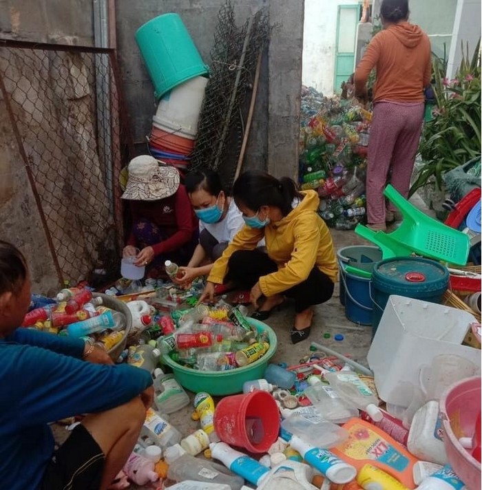 Hội LHPN hướng dẫn hội viên phụ nữ phân loại rác thải tại xã Tam Thanh, huyện Phú Quý