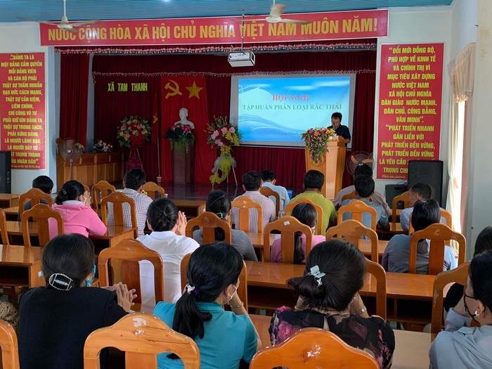 Để nâng cao năng lực, nhận thức về quản lý tổng hợp rác thải sinh hoạt và rác thải nhựa đại dương cho cán bộ, chính quyền, các tổ chức xã hội và cộng đồng, Dự án đã thành lập 3 nhóm truyền thông - đào tạo, tổ chức 18 lớp tập huấn TOT và hỗ trợ kỹ thuật; lắp đặt 103 bảng banner, cấp phát 100 bộ tài liệu và 3.400 tờ rơi/tờ, trang bị 1.254 thùng rác các loại, 1.500 gói men vi sinh và 750 chai giấm gỗ sinh học…; xây dựng Trang thông tin trên mạng xã hội Facebook, Zalo để cập nhật, đăng tải thông tin về hoạt động của dự án, 02 bài phát thanh, 01 clip/video và 01 phóng sự để tuyên truyền có 10 ngàn người được tiếp cận; 1000 phụ nữ đã được tham gia tập huấn nâng cao kiến thức và cách thức phân loại rác thải tại nguồn.