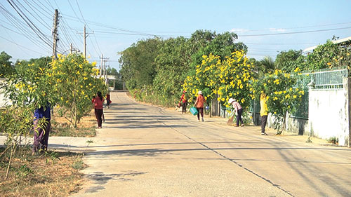 Cũng với mong muốn làm đẹp làng quê, các chị trong chi hội thôn Xuân Tài (xã Phong Nẫm, TP. Phan Thiết) thống nhất mua hoa hoàng yến về trồng dọc tuyến đường vào Trung tâm giống cây trồng. Dù khu vực này đất đai khô cằn, dân thưa, nhưng nhờ bàn tay phụ nữ, nhiều khóm hoa mới trồng từ tháng 8/2019 đang sinh trưởng tốt, cho hoa liên tục. Con đường hoa đã từng bước làm thay đổi nhận thức của người dân, giúp mỗi người có ý thức bảo vệ môi trường.