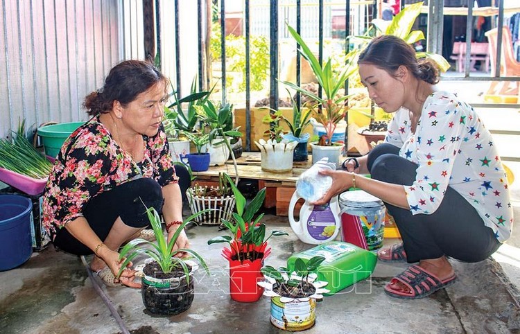 Đặc biệt, để góp phần tô điểm cho cảnh quan môi trường, đồng thời nâng cao ý thức cho hội viên, phụ nữ và người dân cùng tham gia bảo vệ môi trường, Chi hội đã vận động chị em thu gom vỏ chai nhựa đã qua sử dụng, tận dụng để trồng hoa, trang trí thành các đồ dùng hữu ích trong các gia đình.