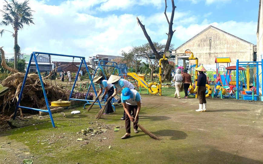 Tại các xã, phường bị ảnh hưởng thiên tai, Hội LHPN cơ sở phối kết hợp với các đơn vị trên địa bàn chung tay giúp người dân thu hoạch lúa, hoa màu; dọn dẹp nhà cửa, vệ sinh môi trường; động viên các gia đình bị thiệt hại sớm vượt qua khó khăn.