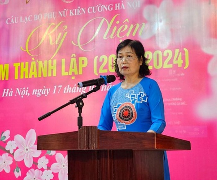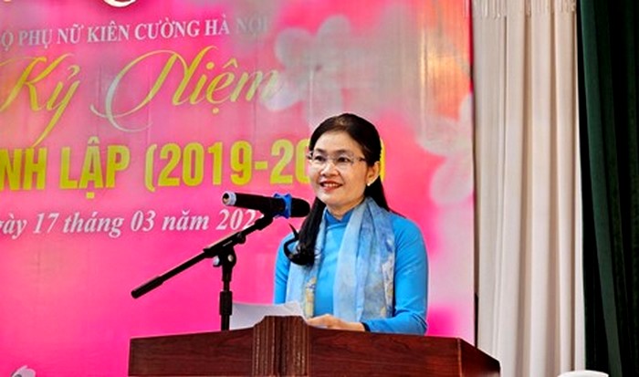 Lãnh đạo Hội LHPN Việt Nam, lãnh đạo Hội LHPN TP Hà Nội chia sẻ với các thành viên Câu lạc bộ Phụ nữ kiên cường Hà Nội tại Lễ kỷ niệm