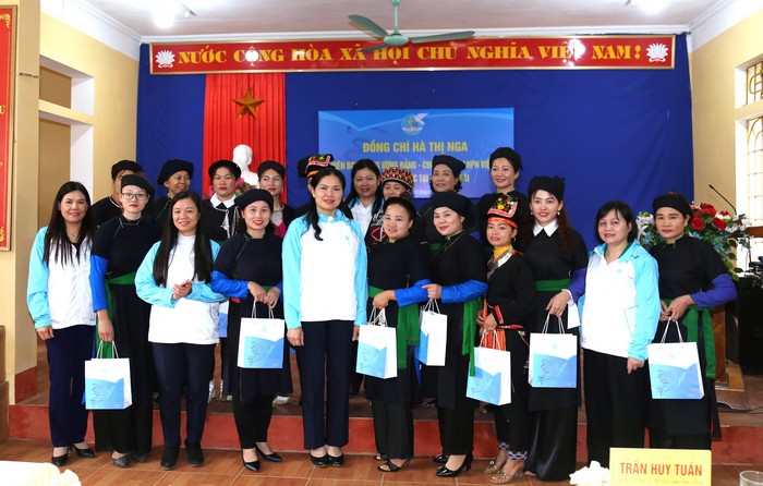 Chủ tịch Hội LHPN Việt Nam Hà Thị Nga trao tặng Áo dài cho 15 Ủy viên BCH Hội LHPN xã Châu Quế Hạ