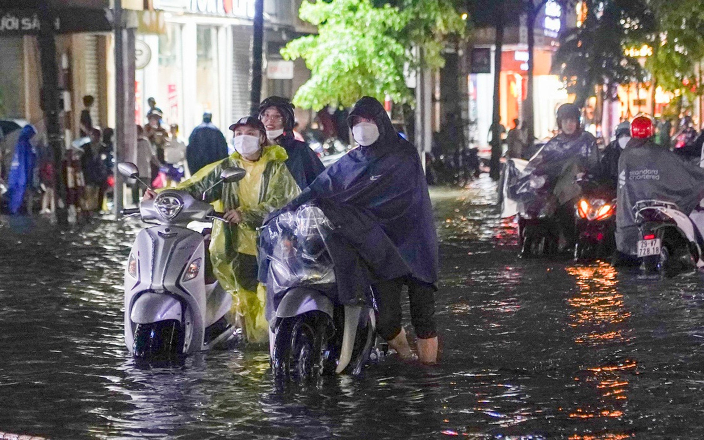 Tối 30/9, ảnh hưởng của bão số 10 đã khiến Hà Nội hứng chịu trận mưa lớn kéo dài nhiều giờ, nhấn chìm hàng loạt tuyến phố trong biển nước. Nhiều nơi ngập sâu trên 1m, giao thông tê liệt, hàng ngàn phương tiện chết máy, người dân khổ sở tìm đường thoát trong cảnh ùn tắc kéo dài.