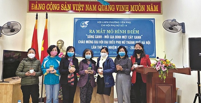 Cũng với tinh thần ấy, nhiều mô hình sáng tạo như: “Sống xanh - Mỗi gia đình một cây xanh” của Hội LHPN phường Yên Phụ, “Nhà sạch, ngõ sạch” của Hội LHPN phường Bưởi… đã ra đời, triển khai có hiệu quả, tạo cảnh quan, không gian sống xanh, sạch đẹp cho các khu dân cư.