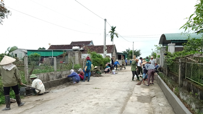 Tham gia chương trình chủ nhật xanh, vệ sinh các tuyến đường thôn