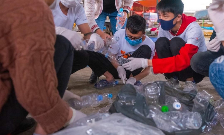 Hội viên phụ nữ và các tình nguyện viên chủ động thu gom, phân loại rác thải nhựa để sản xuất vật liệu gạch sinh thái