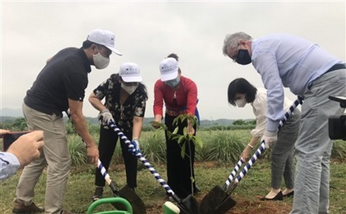 Đại diện Quỹ thúc đẩy sáng kiến tư pháp  và lãnh đạo Hội LHPN tỉnh tham gia trồng cây Lễ phát động Hưởng ứng ngày Môi trường thế giới (5/6) tại xóm Đông xã Thanh Hối ( Tân Lạc)