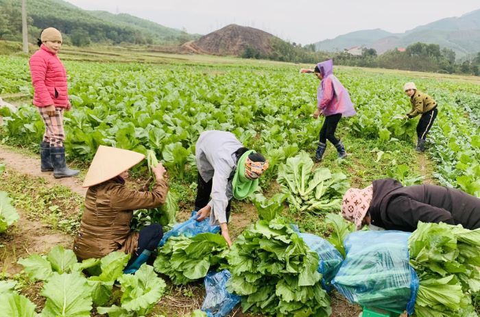 Hội viên HTX Nông sản Điền Xá (huyện Tiên Yên) thu hoạch rau cải xanh