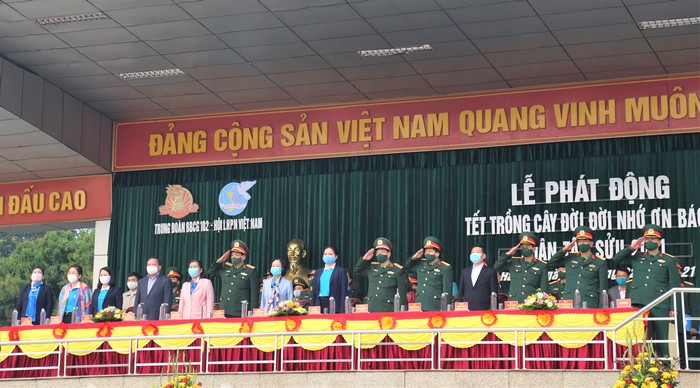 Đồng chí Trương Thị Mai, đồng chí Hà Thị Nga, Thượng tướng Trần Quang Phương cùng lãnh đạo TP Hà Nội, lãnh đạo Trung đoàn Thủ đô trồng cây tại khuôn viên đơn vị Tới dự Lễ phát động Tết trồng cây có các đồng chí: Trương Thị Mai, Ủy viên Bộ Chính trị, Trưởng Ban Dân vận TW; Thượng tướng Trần Quang Phương, Ủy viên Ban Chấp hành TW Đảng, Phó Chủ nhiệm Tổng cục Chính trị Quân đội Nhân dân Việt Nam; Hà Thị Nga - Ủy viên BCH TW Đảng, Chủ tịch Hội LHPN Việt Nam; Nguyễn Thị Thanh Hòa, Nguyên Uỷ viên Ban Chấp hành TW Đảng, nguyên Chủ tịch Hội LHPN Việt Nam, Chủ tịch Hội Bảo vệ quyền trẻ em; Nguyễn Văn Phong, Phó Bí thư Thành ủy TP. Hà Nội; các Phó Chủ tịch TW Hội LHPN Việt Nam cùng đông đảo lãnh đạo các ban, đơn vị TW Hội; cán bộ, chiến sĩ Trung đoàn Thủ đô.