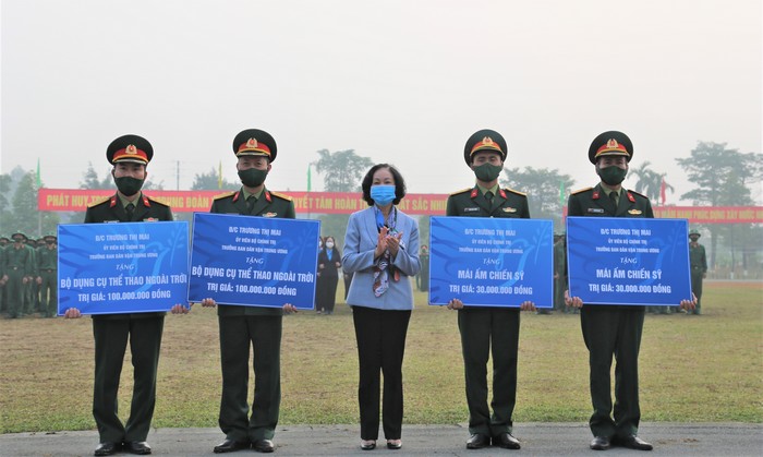 Tại Chương trình, đồng chí Trương Thị Mai - Ủy viên Bộ Chính trị, Trưởng ban Dân vận TW đã trao phần quà và “Mái ấm chiến sỹ” cho 01 gia đình cán bộ tiểu đoàn Phủ Thông và Bình Ca có hoàn cảnh khó khăn.