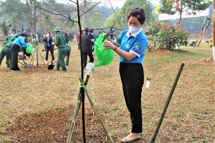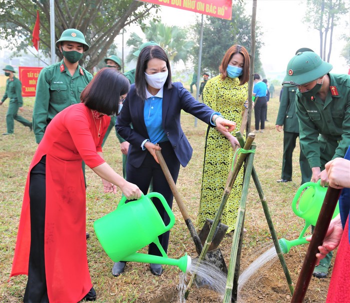 “Lễ phát động Tết trồng cây được tổ chức trang trọng tại Trung đoàn Thủ đô – nơi có tiểu đoàn em nuôi Bình Ca của Hội LHPN Việt Nam, tiếp tục khẳng định tình đoàn kết “quân với dân một ý chí”, sự chung tay, đồng hành của quân đội và nhân dân trong thực hiện các nhiệm vụ chính trị của đất nước, cùng nhau trồng hơn 2.000 cây xanh là công trình “Vườn cây Hạnh phúc” góp phần tô thêm màu xanh cho doanh trại, để màu xanh của tương lai và hy vọng sẽ ngập tràn trên đất nước Việt Nam” – Chủ tịch Hội LHPN Việt Nam Hà Thị Nga phát biểu tại Chương trình.