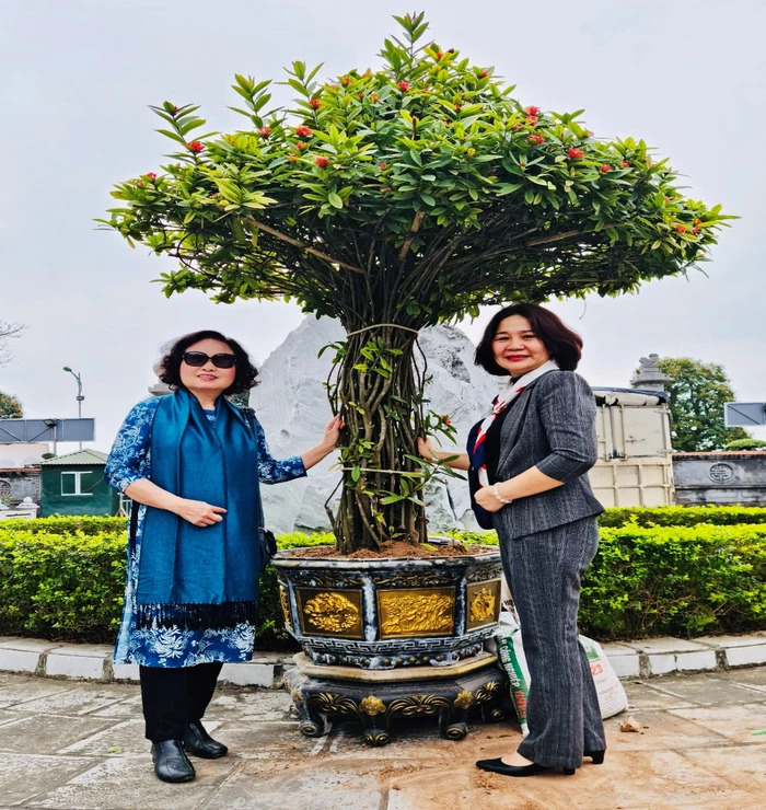 Lãnh đạo Hội Nữ trí thức Việt Nam bàn giao trên 100 chậu hoa cho Trưởng Ban quản lý Đền và đại diện UBND huyện Mê Linh, Hà Nội Ngay sau Đại hội Đại biểu Phụ nữ toàn quốc lần thứ XIII, nhiệm kỳ 2022- 2027 thành công tốt đẹp, ngày 13/3/2022, Hội Nữ trí thức Việt Nam đã cung tiến cây cảnh cho đền thờ Hai Bà Trưng (Mê Linh, Hà Nội). Số cây cảnh được cung tiến trên 100 chậu hoa gồm hoa mẫu đơn, hoa giấy và hoa hồng để tạo thêm cảnh quan Đền thờ Hai Bà Trưng.