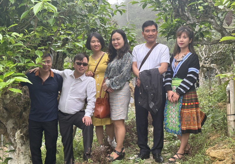 Du khách tham quan và chụp ảnh tại vườn chè cổ thụ Suối Giàng (Yên Bái)