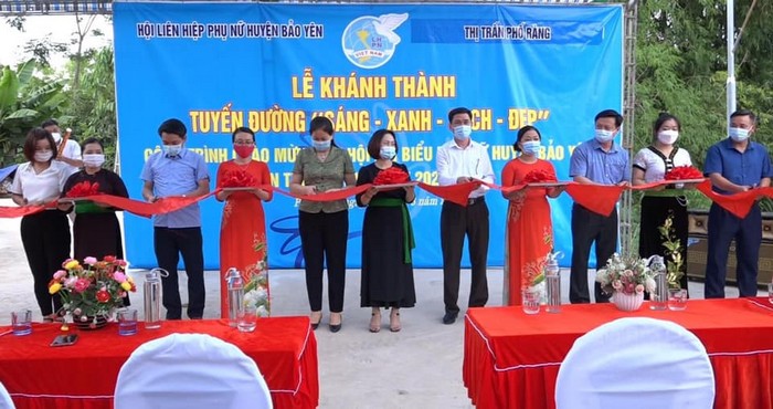 Chủ tịch Hội LHPN tỉnh Hà Thị Khánh Nguyệt cắt băng khánh thành công trình sáng, xanh, sạch, đẹp của Hội phụ nữ huyện Bảo Yên