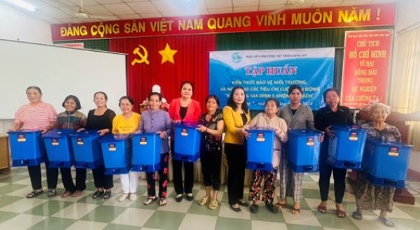 Lễ bàn giao bồn nước sạch cho hội viên, phụ nữ Để nâng cao vai trò, trách nhiệm của Hội LHPN các cấp trong phối hợp và triển khai thực hiện các tiêu chí CVĐ “Xây dựng gia đình 5 không, 3 sạch, góp phần vun đắp giá trị gia đình Việt Nam” và nâng cao hơn nữa nhận thức, trách nhiệm của toàn xã hội trong việc triển khai thực hiện chủ trương, đường lối của Đảng, chính sách pháp luật của Nhà nước trong xây dựng nông thôn mới, Hội LHPN tỉnh đã tổ chức tập huấn cung cấp kiến thức cho hơn 200 đại biểu là cán bộ, hội viên, phụ nữ và hộ dân địa phương của xã An Vĩnh Ngãi và phường 7 (TP. Tân An), xã Long Hậu và thị trấn Cần Giuộc (huyện Cần Giuộc).