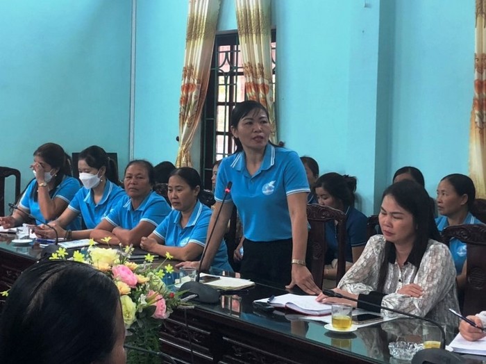 Chủ tịch Hội Phụ nữ xã Giao Hải Lê Thị Dậu ý kiến tham luận tại hội thảo