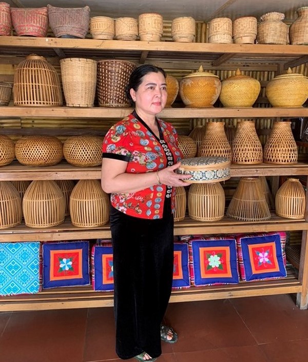 Bà Hoàng Thị Phượng, Chủ homestay Luật Phượng tại thôn Đêu 3, xã Nghĩa An, thị xã Nghĩa Lộ, tỉnh Yên Bái sưu tầm các mặt hàng thổ cẩm, các đồ dùng truyền thống của đồng bào dân tộc Thái như: ghế mây, nón lá, mõ trâu... để trưng bày, giới thiệu cho khách du lịch góp phần xây dựng xã Nghĩa An trở thành xã nông thôn kiểu mẫu
