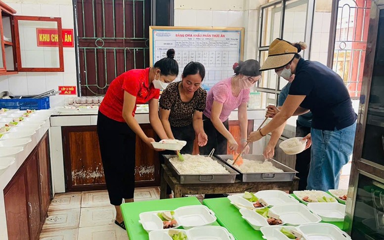 Hội viên phụ nữ xã Hoàng Vân, tỉnh Bắc Ninh, nấu những suất ăn cho lực lượng làm nhiệm vụ hỗ trợ và người dân chịu ảnh hưởng của mưa lũ