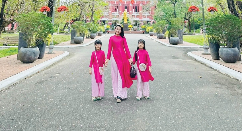 Chị Hà chia sẻ: “Áo dài Huế mang nét đẹp rất riêng, kín đáo, dịu dàng mà vẫn toát lên sự thanh lịch. Khi khoác lên mình tà áo dài, tôi cảm thấy tự tin và tự hào vì đang gìn giữ một phần văn hóa của Huế. Tôi muốn các con gái mình lớn lên cùng hình ảnh áo dài trong những dịp lễ, Tết, để con hiểu và yêu hơn truyền thống của dân tộc”.
