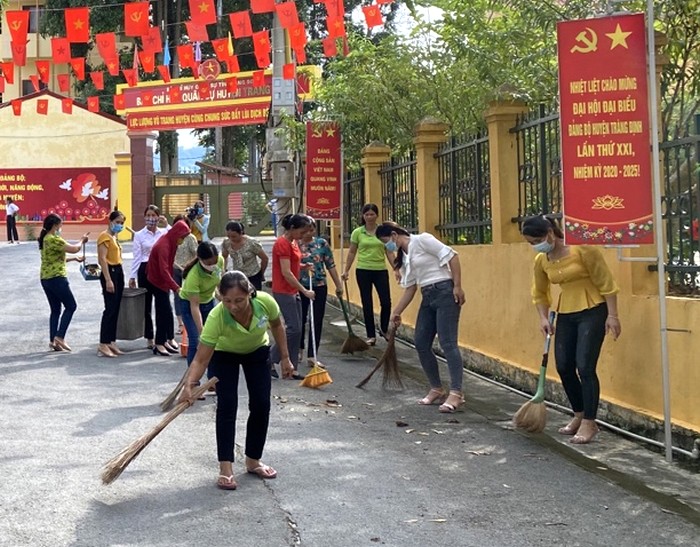 Phụ nữ Tràng Định tham gia dọn vệ sinh môi trường