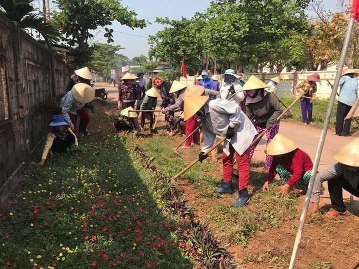 Hội viên, phụ nữ huyện Quảng Ninh tham gia trồng đường hoa phụ nữ