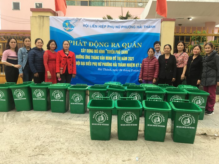 Hội LHPN phường Hải Thành, TP Đồng Hới trao tặng thùng rác cho hội viên, phụ nữ