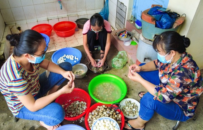 Các chị tất bật chuẩn bị nguyên liệu cho bữa ăn