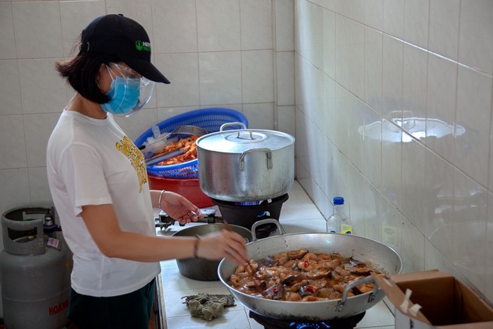 12h trưa nắng như đổ lửa, các chị lại tất bật mỗi người một tuyến đường, chuyển từng suất ăn cho kịp nóng. Nhóm còn lại tiếp tục sơ chế thực phẩm để chuẩn bị cho bữa chiều và tối. Bữa cơm đơn sơ trên bàn các chị vẫn chưa kịp ăn. Với lực lượng hậu phương vững chắc như thế nhất định ngày chiến thắng đại dịch sẽ không xa.