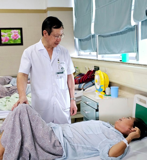 Bác sĩ CK II Vũ Công Khanh (Phụ trách khoa Phụ sản, Bệnh viện Bạch Mai) đang thăm khám cho bệnh nhân UTCTC