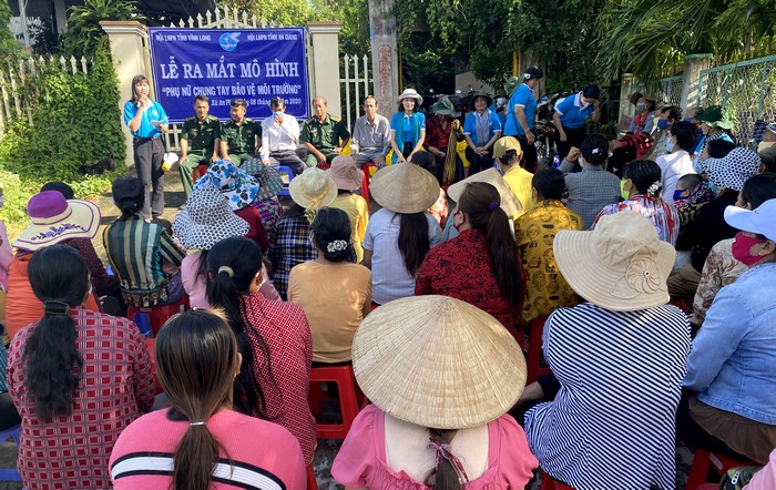 Phong trào “Chống rác thải nhựa” được các cấp Hội đẩy mạnh tuyên truyền trong các tầng lớp phụ nữ với 2.493 cuộc, thu hút 75.759 người tham gia; thành lập 132 mô hình hạn chế sử dụng túi nilon, hạn chế sử dụng sản phẩm nhựa một lần, xách giỏ đi chợ và nhiều mô hình khác như: Tiết kiệm rác thải nhựa - Xanh hóa văn phòng Hội; Ngôi nhà 100 đồng; Đổi rác thải lấy nhu yếu phẩm; Tổ thu gom rác và phân loại rác tái chế bán phế liệu mua văn phòng phẩm; không sử dụng chai nhựa, bọc nilon và không vứt; nói không với túi nilon; đổi rác thành nhu phẩm; giảm thiểu rác thải nhựa, bảo vệ môi trường; phụ nữ hạn chế sử dụng rác thải nhựa - tiết kiệm giúp phụ nữ nghèo; phụ nữ hạn chế sử dụng rác thải nhựa; đổi rác lấy cây xanh, tái chế chai nhựa làm đồ dùng trong gia đình; làm lồng đèn giấy thay lồng đèn kiếng... Trong đó nổi bật là mô hình “Ngôi nhà 100 đồng” tại 11 phường (TP Vĩnh Long), có 10.000 hội viên, phụ nữ tham gia, thu gom được 375kg rác thải nhựa dùng một lần bán phế liệu, giúp được 21 trường hợp trẻ em có hoàn cảnh khó khăn, không an toàn và 05 phụ nữ nghèo, số tiền 24 triệu đồng.