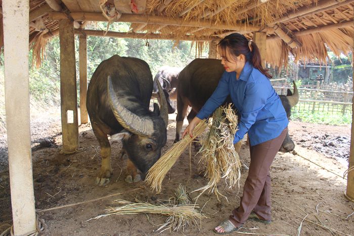 Được Hội LHPN xã tạo điều kiện tiếp cận vốn vay, chị Hà Thị Nhân, khu Phắt, xã Lai Đồng, huyện Tân Sơn đầu tư mô hình chăn nuôi, đem lại hiệu quả kinh tế cao