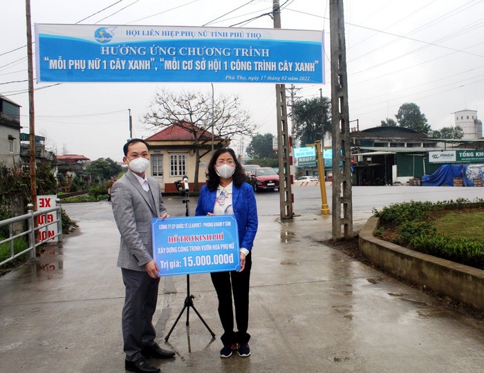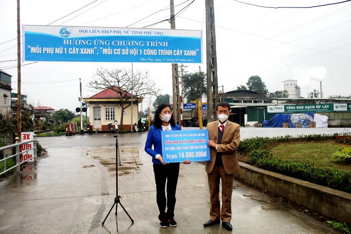 Công ty cổ phàn Supe và hóa chất Lâm Thao trao kinh phí hỗ trợ Hội LHPN tỉnh trồng, chăm sóc vườn hoa phụ nữ