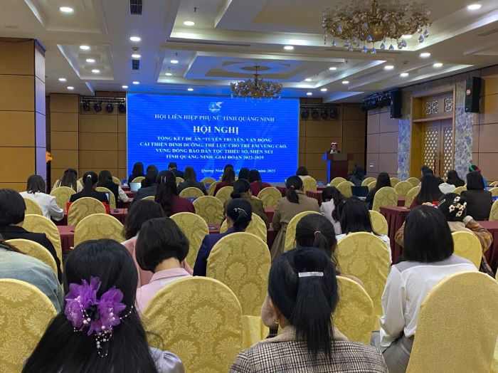 Quang cảnh hội nghị Sau hơn 3 năm triển khai, Đề án “Tuyên truyền, vận động cải thiện dinh dưỡng, thể lực cho trẻ em vùng cao, vùng đồng bào dân tộc thiểu số, miền núi tỉnh Quảng Ninh giai đoạn 2022 - 2025” do Hội LHPN tỉnh chủ trì đã đạt nhiều kết quả tích cực, góp phần nâng cao chất lượng chăm sóc, nuôi dưỡng trẻ em dưới 5 tuổi tại các địa bàn khó khăn.