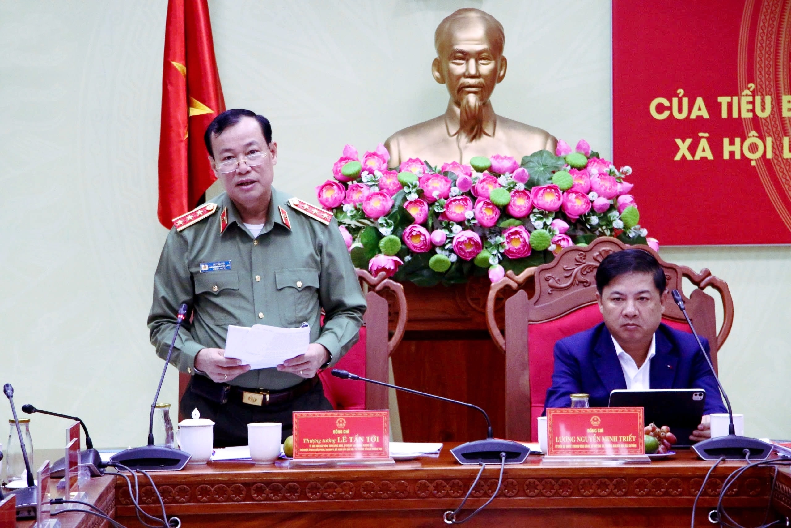 Giám đốc Công an tỉnh, Ủy viên Ủy ban bầu cử tỉnh Đắk Lắk, thiếu tướng Phan Thanh Tám phát biểu tại cuộc làm việc. Ảnh: quochoi.vn