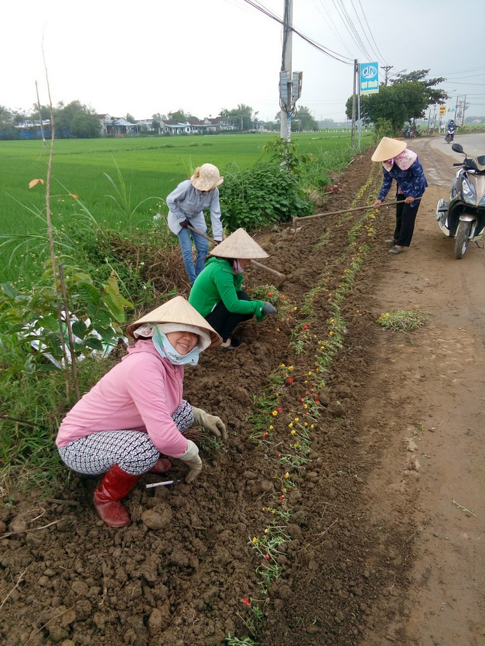 Chị Vân (Áo hồng) tham gia trồng “Con đường hoa phụ nữ”