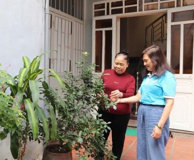 Bà Nguyễn Thị Nga (bên phải), chi hội trưởng phụ nữ phố Nam, phường Hạc Thành trò chuyện, nắm bắt tâm tư hội viên