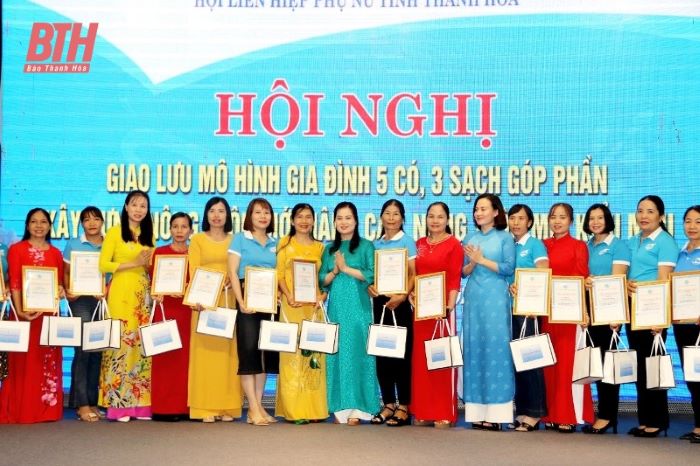 Lãnh đạo Hội LHPN tỉnh trao giấy chứng nhận cho các mô hình Thực hiện Chương trình MTQG xây dựng NTM trên địa bàn tỉnh Thanh Hóa, giai đoạn 2021-2025 và CVĐ xây dựng gia đình “5 không, 3 sạch”, năm 2022, Hội LHPN tỉnh đã chỉ đạo xây dựng mô hình điểm “Gia đình 5 có, 3 sạch” với các tiêu chí: có ngôi nhà an toàn, có sinh kế bền vững, có sức khỏe, có kiến thức, có nếp sống văn hóa và sạch nhà, sạch bếp, sạch ngõ tại 4 xã thuộc 4 huyện: Thiệu Hóa, Quảng Xương, Triệu Sơn, Hậu Lộc. Từ 4 mô hình điểm với 40 hộ tham gia, đến nay toàn tỉnh đã xây dựng, nhân rộng được 403 mô hình.