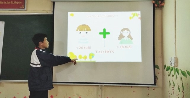 Trường PTDT Bán trú THCS Tả Giàng Phình, thị xã Sa Pa, tỉnh Lào Cai có gần 100% học sinh DTTS, chủ yếu là người Mông. Tình trạng tảo hôn ở đây còn khá phức tạp, sau Tết, nhiều học sinh trong trường thường có ý định nghỉ học ở nhà để lấy chồng.