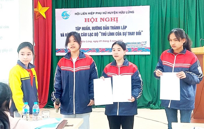 Hội phụ nữ huyện Hữu Lũng tỉnh Lạng Sơn tập huấn cho các thành viên CLB " Thủ lĩnh của sự thay đổi" của các trường học trên địa bàn