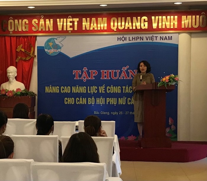 TW Hội LHPN Việt Nam và Hội LHPN tỉnh Bắc Giang vừa tổ chức tập huấn nâng cao năng lực về công tác giảm nghèo cho 100 chị là cán bộ Hội LHPN cấp xã, cán bộ làm công tác giảm nghèo không chuyên trách cấp xã và phụ nữ. Các học viên tham gia tập huấn đã được tìm hiểu các chuyên đề, nội dung: Tổng quan hoạt động hỗ trợ nâng cao quyền năng kinh tế cho phụ nữ gắn với công tác hỗ trợ phụ nữ giảm nghèo giai đoạn 2021-2025; Hướng dẫn quy trình, kỹ thuật sản xuất an toàn theo hướng VietGAP, Global Gap; định hướng tham gia các mô hình giảm nghèo theo chuỗi giá trị, mô hình sinh kế giảm nghèo cho phụ nữ theo hướng liên kết sản xuất chuỗi giá trị; Tư vấn quản lý chất lượng sản phẩm hàng hóa dịch vụ; xây dựng nhãn hiệu, thương hiệu, truy xuất nguồn gốc sản phẩm; kiến thức thương mại điện tử.