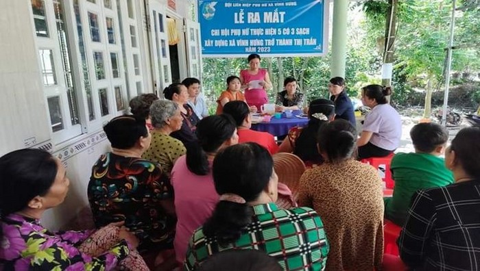 Mô hình “Chi hội phụ nữ thực hiện 5 có, 3 sạch” tại xã Vĩnh Hưng tại ấp Trần Nghĩa, xã Vĩnh Hưng, huyện Vĩnh Lợi có 40 thành viên.