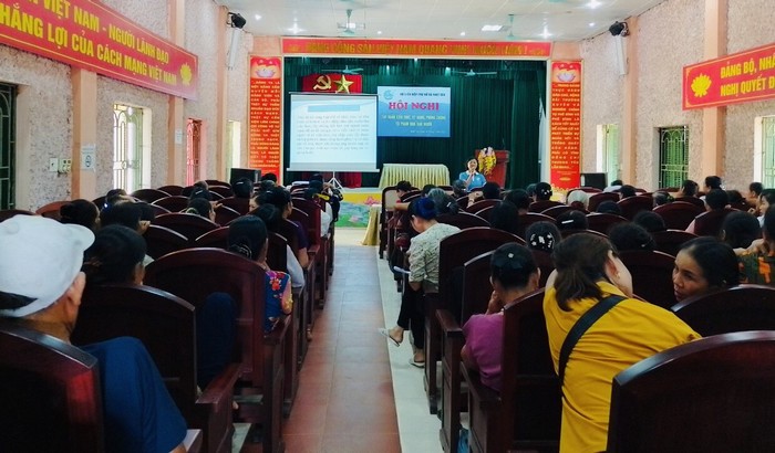 Trưởng Ban Tuyên giáo – Chính sách Hội LHPN tỉnh Nguyễn Thanh Huyền tuyên truyền kiến thức pháp luật về môi trường tại xã Yên Phú, huyện Yên Mỹ