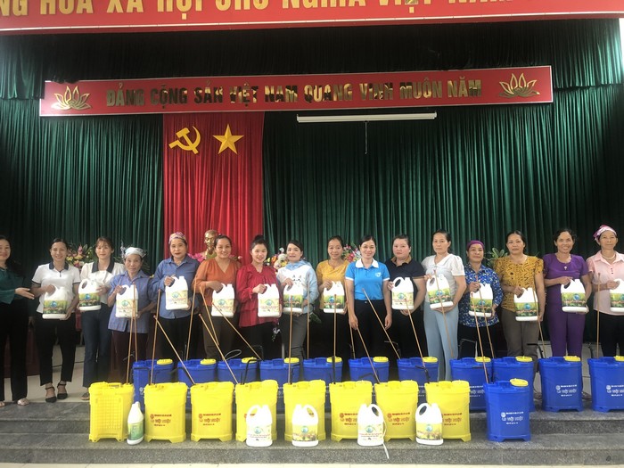 Nhân dịp này, Hội LHPN tỉnh trao tặng 20 bình xịt khử khuẩn, 20 can chế phẩm EM Hoằng Đạo cho thành viên Tổ hợp tác chăn nuôi lợn nái đen xã Phú Lệ (huyện Quan Hóa) và hướng dẫn tập huấn kỹ thuật xử lý chuồng trại, bảo đảm vệ sinh môi trường trong chăn nuôi.